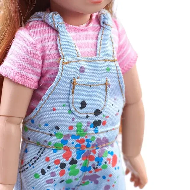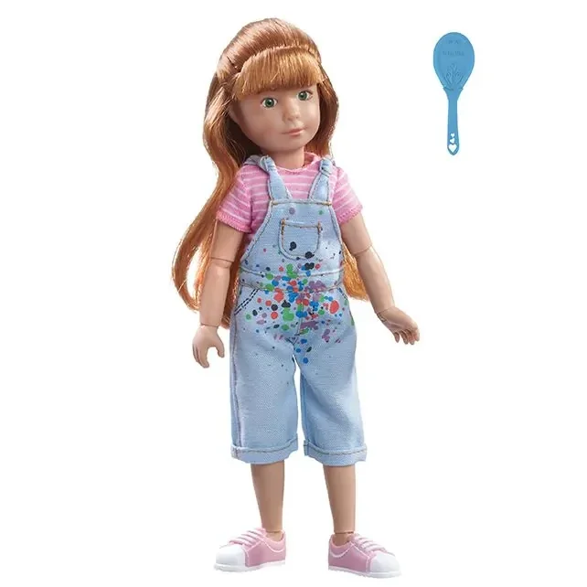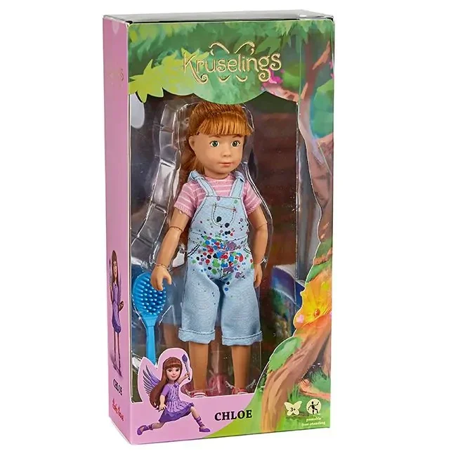 Deze poppenset van de Kruselings bevat Chloe in haar schilders outfit met een haarborstel. De pop is 23 cm lang en heeft het uiterlijk van een kind. De armen en benen van de Kruselings poppen zijn buigzaam ter hoogte van de pols, elleboog, schouder, bekken en knieën. De pop is gemaakt van vinyl en heeft glazen ogen.